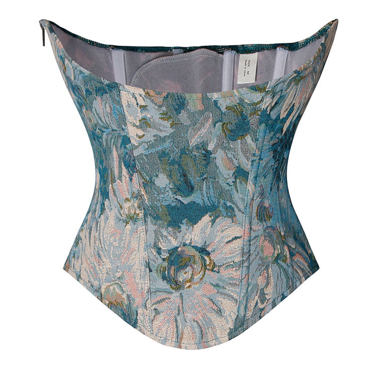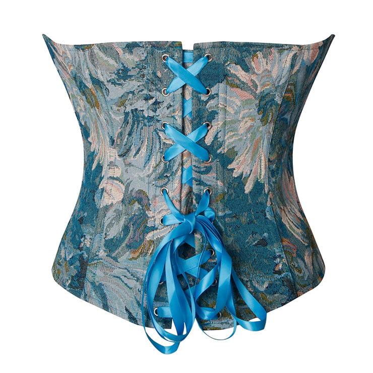 Blue Chrysanthemum Plastic Boned Corset